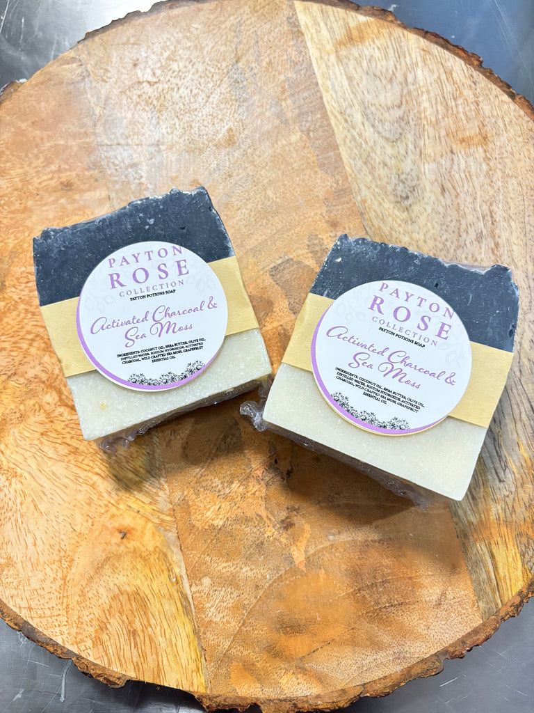 Crafted with activated charcoal and wild-crafted sea moss, this bar soap gently cleanses, detoxifies, and adds moisture to your skin. Enjoy the benefits of a deep clean and hydrated skin with this expertly crafted soap.
