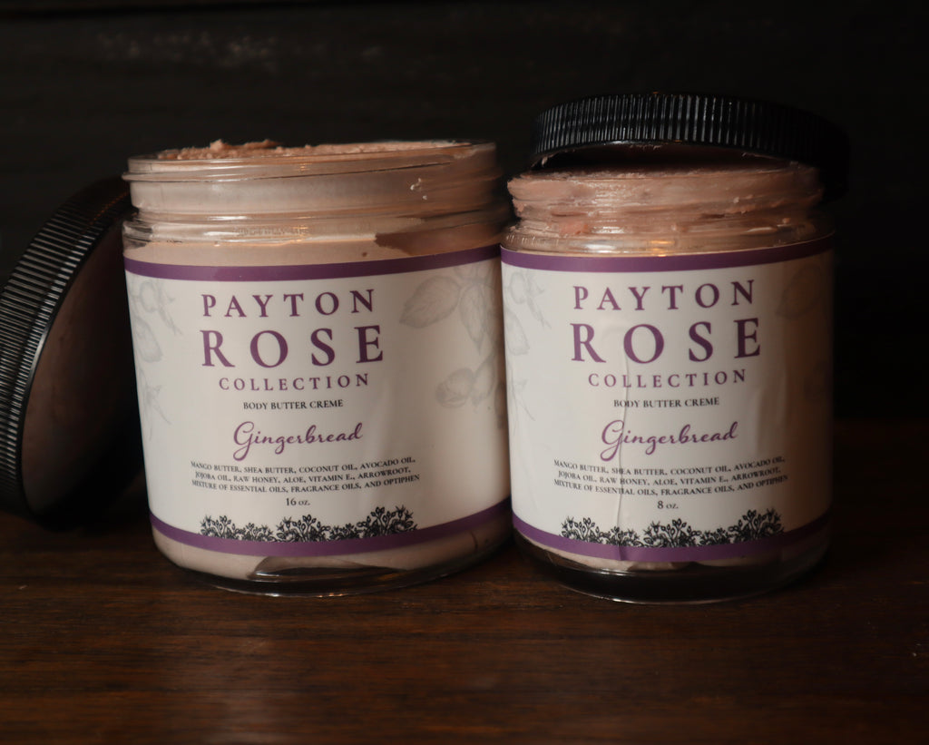 Body Butter - Mango Buttter, she butter, coconut oil, avocado oil, jojoba oil, raw honey, aloe, vitamin E, arrowroot powder, mixture of essential oils, fragrance oils, and optiphen.