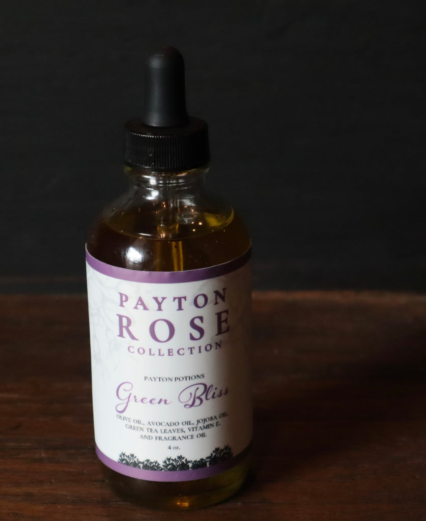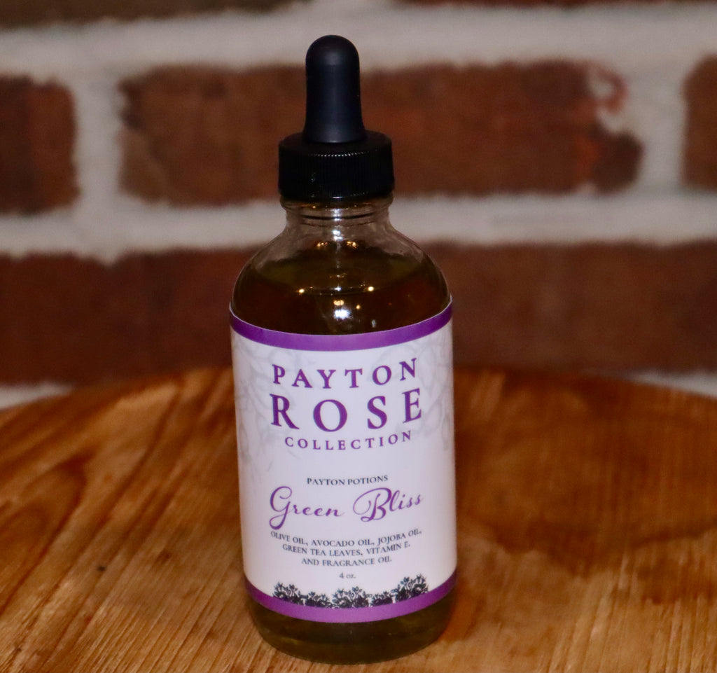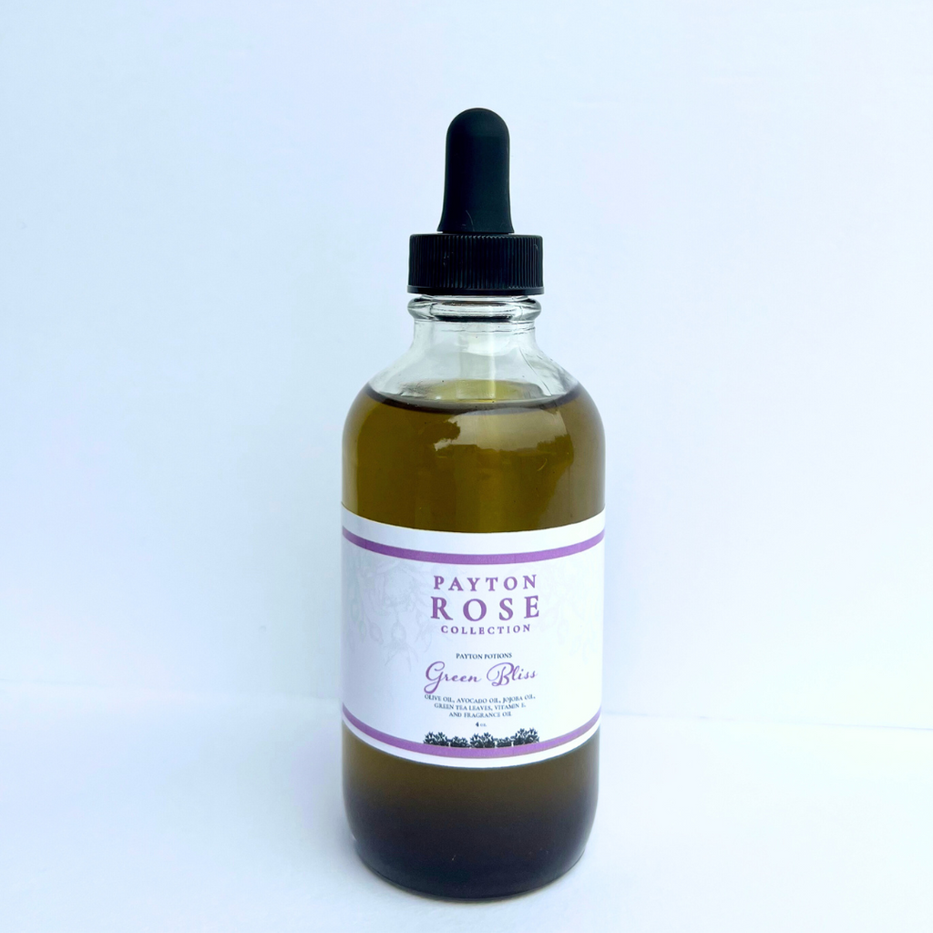 Green Bliss - Oil is infused with green tea with a light refreshing scent of green tea. This nourishing oil can be used on the skin and hair and scalp. It's an antioxidant, anti- inflammatory, anti-microbial helps relieve symptoms from eczema, and psoriasis as well as dandruff.