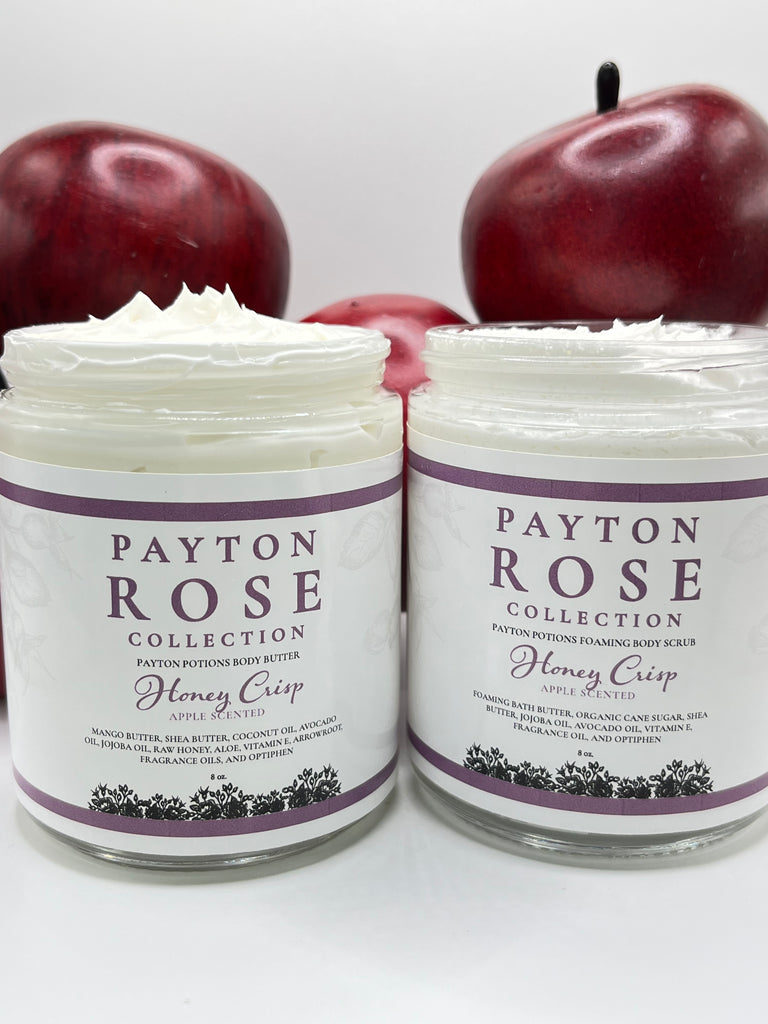 Indulge your skin with our Honey Crisp Body Butter. Formulated with a delicious apple scent, this luxurious addition to your skincare routine will leave your skin feeling soft and nourished. Treat yourself to the perfect blend of nature's sweetness and expertly crafted skincare.