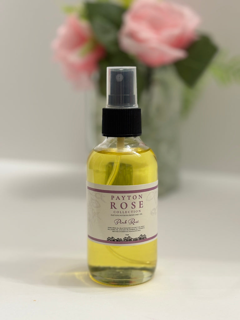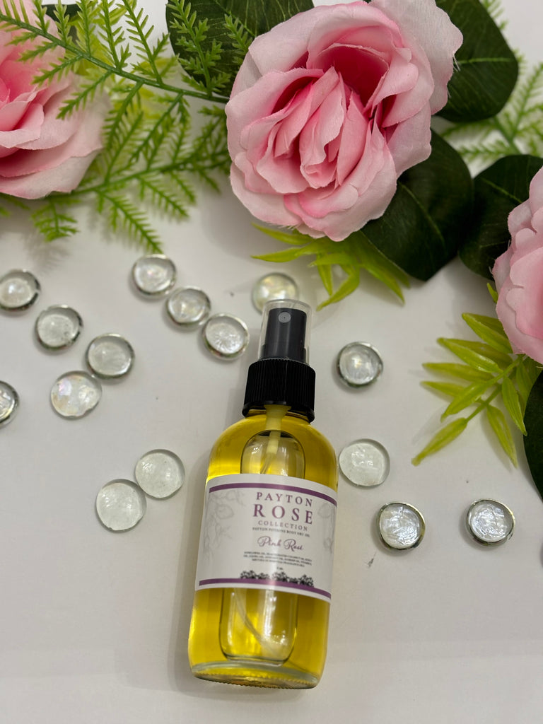 Pink Rose' Body oil is a dry oil which means it will absorb into the skin and will not leave an oily residue and will leave your skin soft and moisturized. This body oil smells like sweet bubbly mix of vanilla, berries, rose, cashmere, red current, and coconut.